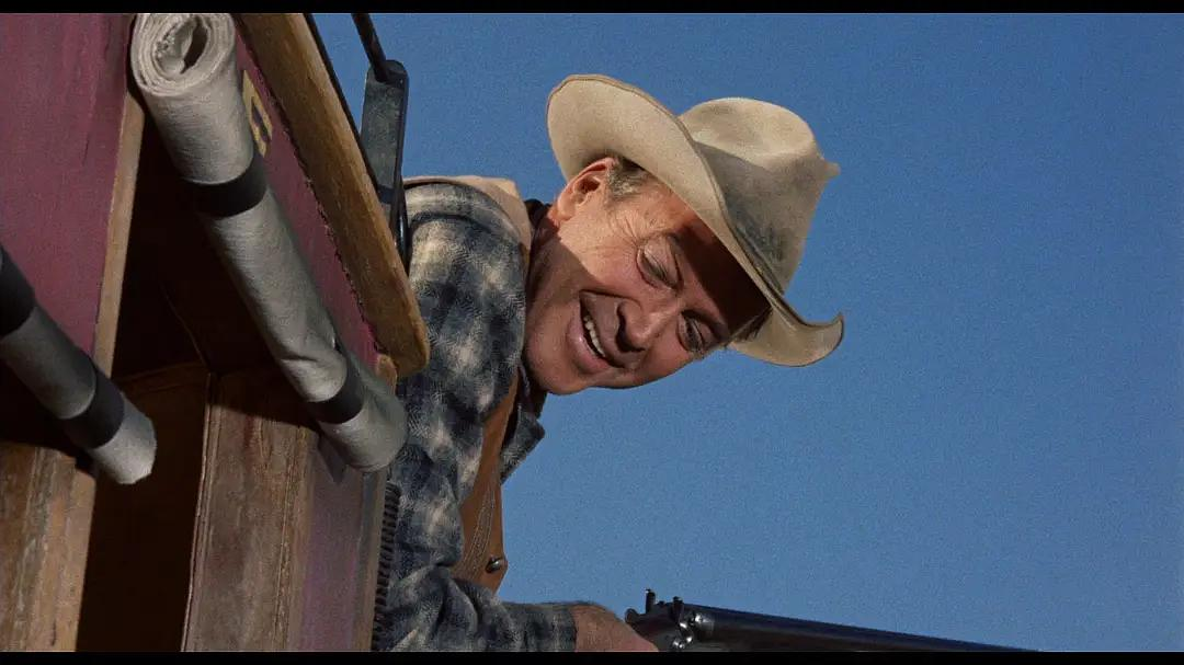 影片中最著名、最令人印象深刻的一个镜头,被认为完全是约翰・福特的坏脾气所致。在那个著名的五分钟双人镜头中,詹姆斯・斯图尔特和理查德・威德马克在河岸上闲聊,话题涉及金钱、女人和科曼奇人的问题,影片的悲观喜剧色彩、厌女情绪和对生命的漠视态度都完美地浓缩在这个镜头里。福特称选择这个镜头只是因为他更喜欢宽银幕双人镜头,而不是在 "满脸麻子的特写镜头" 之间交叉剪辑。然而,斯图尔特等人坚称,福特强迫剧组人员在冰冷的河水中齐腰深地站了一整天,直到这个镜头拍摄完成。