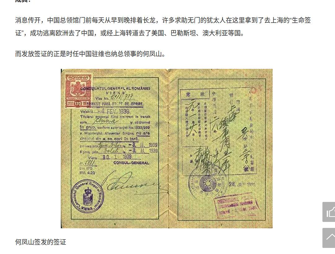实际历史上中华民国的驻维也纳总领事何凤山 给犹太人发行的签证,保守估计他本人就发放2000张