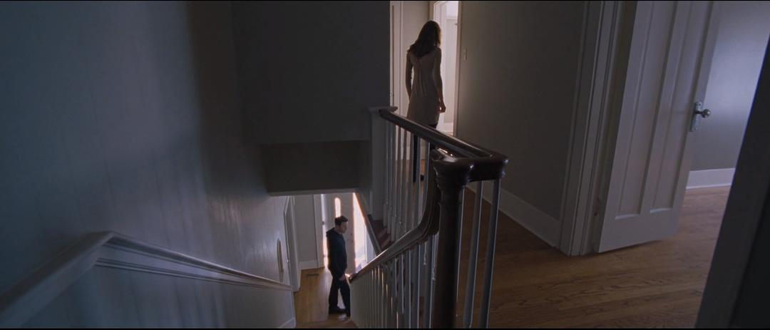 此外,影片中随处可见低机位仰拍镜头(依然是广角),这种仰望的姿态,恍若虔诚的祈祷与对上苍的敬拜,与影片的神性气息卓然契合。我们还可以比较《生命之树》中的大量低机位与仰角镜头,它们似乎模拟了孩童般的视角,既敬畏又好奇,在追问生命与信仰的同时,抱持着祈望的诚挚之心。