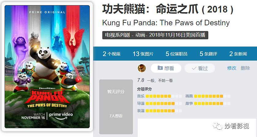 喜剧效果上,《命运之爪》延续了《功夫熊猫》系列固有的特点,而且这部剧十分适合孩子观看,我给孩子看的效果比较好。