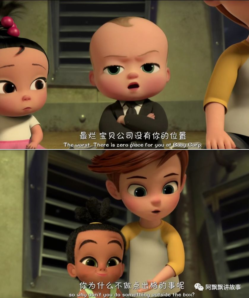 最后我们来讨论下第七集,是的,请原谅我的手贱又点开了两集,真应该在双11前剁手。这部剧集讲述了爸爸妈妈要出门,于是就请了个临时保姆来照顾他们两小时,哥哥蒂姆欣然接受,但是宝宝老板不知道从哪里得知了,保姆和孩子是天敌,所以要和保姆对着干,他的理由是:我放弃了一切到这里,是因为我爱爸爸妈妈,爱哥哥,想和你们成为一家人,而不是这个保姆对我发号施令!好像听起来还挺有道理的,我无法反驳!n