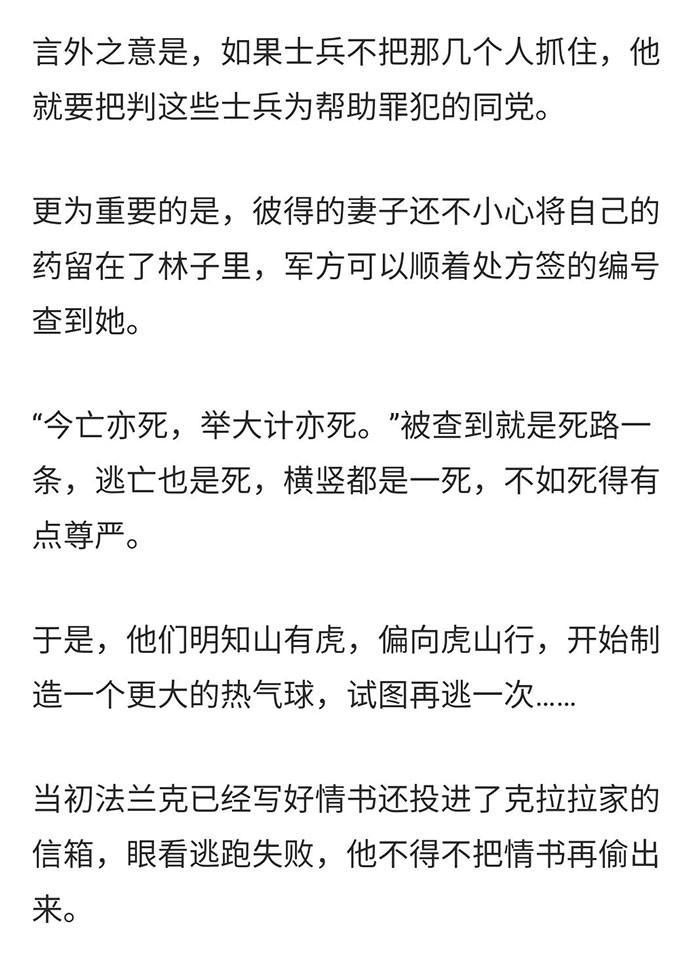 两家人如果想逃离,必须在六周内再造一个热气球,还得躲开国安部的天罗地网。