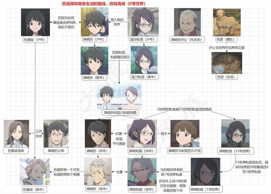 这是日高历口中所说的和佐藤栞不会相遇的那个世界,也是历和和音能够在一起的幸福世界,感觉这才是相对幸福的结局。我将人物关系图梳理了一下,大家可以看的更懂。