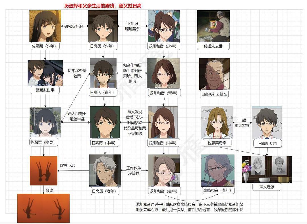 还有一些问题比如整体节奏比较差(下面展开讲),尤其两部故事讲的都是男主的一生,剧情之间少有铺垫,时间跳跃的部分显得非常唐突。配角逻辑让人摸不透(比如《那个我》中暦间接害栞脑死亡栞的妈妈就一丁点都不怨暦我还是理解不能),而且这电影更偏向男女主3人的独角戏,配角真的十分平面化,甚至连主角们都显得十分平面化,与其说是角色不如说都是为了剧情服务的工具人,当然这些问题从轻小说动漫化的作品多多少少都有这种问题。再有就是日式万年不变的那几个套路,意外 车祸 生病 原生家庭 跨越时间的爱 这部算是大满贯占了个遍。