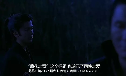 最后小议一下冲田和加纳的关系。很多人都说冲田和加纳有暧昧关系,主要是因为影片末的时候土方说“总司,不是你喜欢总三郎,而是总三郎喜欢上了你。”然而整个影片对于冲田和加纳的关系描写实在很晦涩,对手戏很少。只有两处,第一处是加纳向冲田询问井上,后来引出了加纳和井上比试而惹出一系列事端;另外一处很间接,当井上和加纳说要去杀土佐浪人的时候,冲田睁着眼睛躺在被窝里,一言不发,等二人离去以后,才赶紧穿上护甲,报告给土方并带队士去支援。哪一处都没有写明冲田和加纳的关系。我认为这两处戏实际上是冲田在试探加纳。一开始的时候冲田对土方说他不太看得惯田代和加纳在搞bl,又说不理解加纳的入队,在冲田看来公子哥加纳该不会就是来新选组搞乱关系的吧。为此,冲田听到井上和加纳的谈话后按兵不动,就是为了看看加纳是否有为了新选组的名誉而冒险搏斗的决心。然而加纳确实舍命和浪人搏杀,并负了伤,可以说扭转了冲田对于加纳的看法。因此在文末那段关于《菊花之盟》的对话中,冲田表示他依然反感他们bl的关系,但是众道的约定可以是美好的,而他喜欢美好的事物。可惜,田代和加纳的众道并不美好,真相还很丑陋,这让冲田失望之余而杀了加纳。再回到土方说的那句“不是你喜欢总三郎,而是总三郎喜欢上了你”,和其他为了私欲待在新选组的那些人截然不同的理想主义者冲田总司,可以说是另一个理想主义者加纳所仰慕的对象。只是前者得以单纯的信着御法度和新选组,而后者的理想逐渐的破灭了而已。这大约就是理想主义者的命运吧,少数的人因为种种际遇而得以保全,而大部分的人的理想都遭到了毁灭而成了御法度的祭品而已。