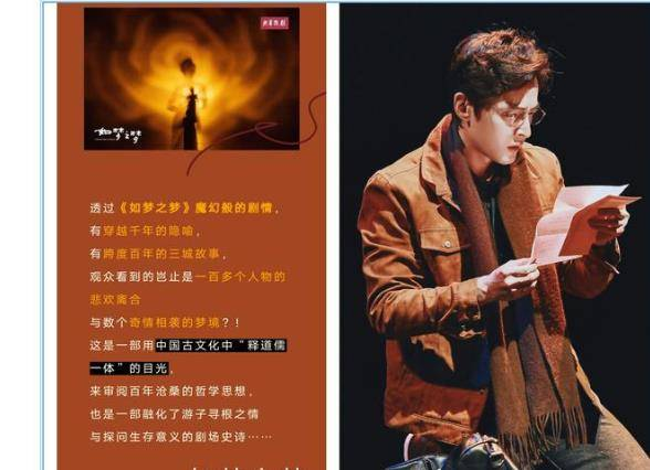 正是他转型之际,他沉下心来,仔细磨炼演技,从《如梦之梦》入手,经历过全国巡回演出,在观众们犀利的视角下,他脱胎换骨,顺利完成转型。