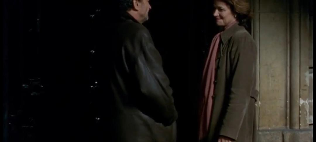 Marie仰面躺倒在床上,幻想之中,两个男人一左一右替她脱了鞋子,轻轻抚摩她的腿,接着是身体,然后是她的脸。四只饱经风霜的男人的手,抚摸着她的脸庞。她闭上眼睛,脸上洋溢着无限的满足,此时此刻,她脸上的皱纹似乎都消失不见。那是一张服丧的微笑的面容,看不到任何痛苦的面容。她的双手无比珍惜地抚摸着那四只手,仿佛要确认有两倍的Jean在她的身边。一张脸,六只手,整个镜头变得惊人的拥挤!