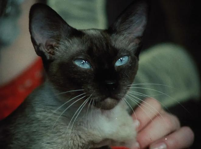 我很喜欢这几个镜头,用了鱼眼镜头和暹罗猫的视角,一步一晃的,展现出了猫的动态,猫的名字就是魔格亚纳. 另一个是姐姐一步一步走进海里,被浪一遍遍打湿,和妹妹处于迷幻状态诗意般的游走.