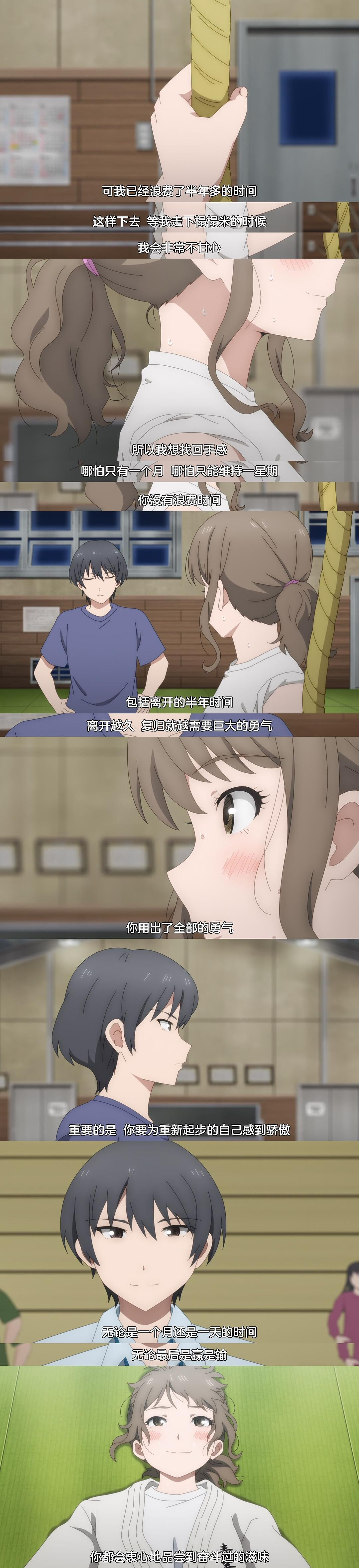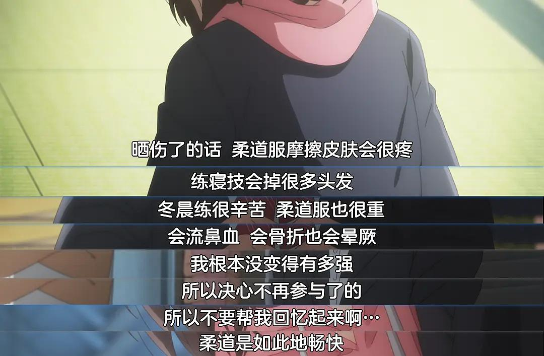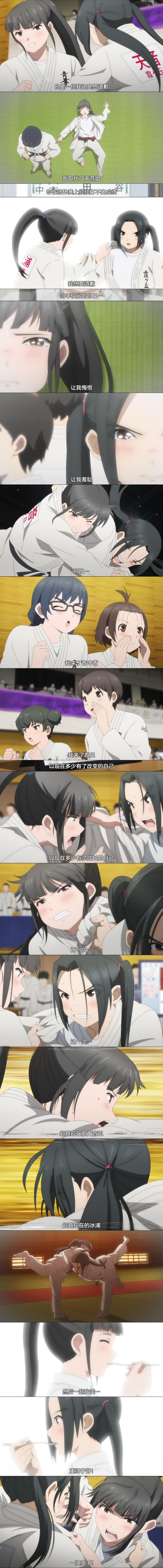 本身柔道这样的运动更加适合男性,而贴贴番自然就会有另外的味道(好甜),而这个时候看到她们之间的对话和贴贴,缘叶觉得这部动画就算是柔道番也可以追一下的。当然,作为缺点的柔道其实也限制了这部作品的发展。正如这里说的柔道更加适合男性一样,会有种力量与力量的碰撞,而这样的燃看着会更加适合。同时,如果是女性在进行柔道的话,会有产生更多的美感(18),你说呢?