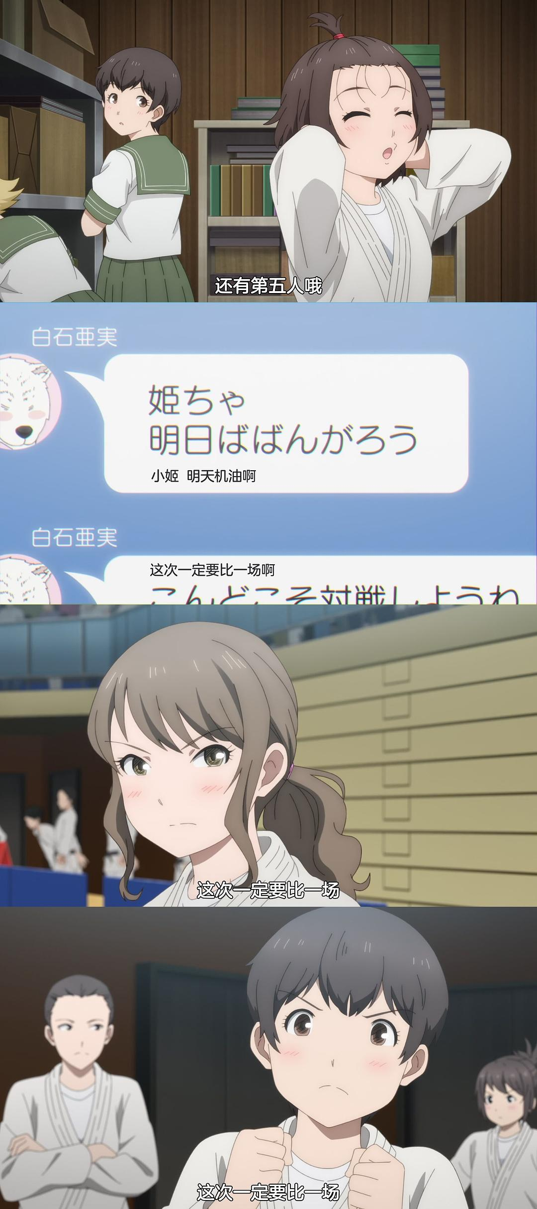 是的,她们之间的故事就是从小喜欢柔道,然后高中后就打算放弃柔道的故事。只不过大家都懂得,自然没有把这些话放在心上,不然这动漫就完结撒花了啊2333不过在看动画的时候,还是被园田未知她们的表情包给笑疯了,对啊,缘叶就是看到这里的时候觉得这番值得推荐的。