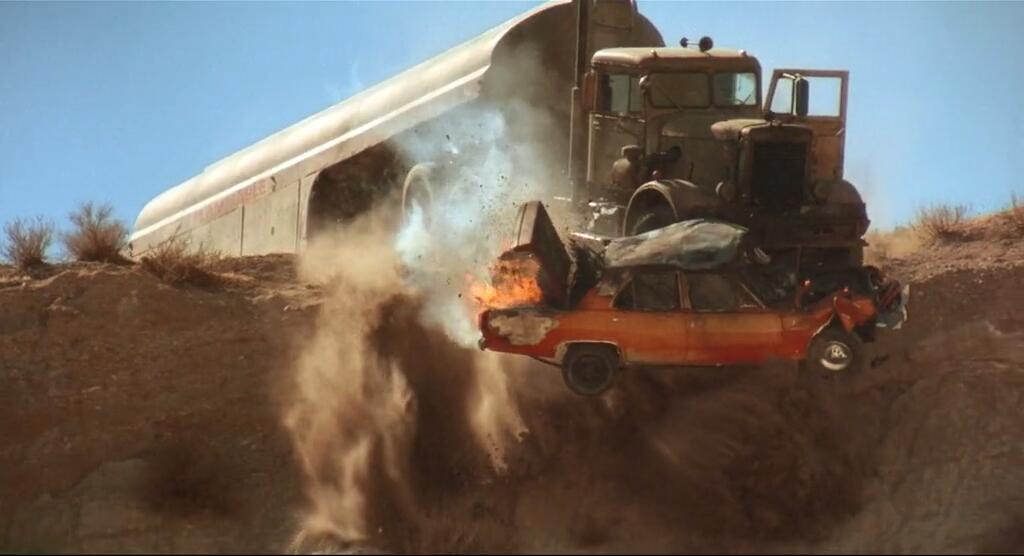 在高速驾车途中,主角超车了前方行驶的大型挂车,结果被大挂车一路追杀,而挂车司机的始终未露出真面目……影片用极少的登场人物+两辆车就出色刻画了完美的恐怖气氛,其手法在之后被很多电影引用。例如2001年保罗·沃克主演的《致命玩笑》,也是路怒追杀标配电影。