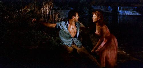 A rumbustious picnic follows, Logan marshals an appreciatively large number of extras to show off the down-home jollification, everyone has a whale of a time, even Hal seems to integrate into the chipper mass, yet, small talk can touch a raw nerve when his rodomontade is punctured by Alan’s brusque remarks, he is an outsider, a loser who hasn’t achieved anything, a bum with a cap in hand. That said, the potency of his outward virility becomes an ravishing draw of the opposite side, to Millie, he epitomizes the ideal manhood that stirs her adolescent feelings; to Rosemary, he reminds her of what she misses in a man and someone whom she can only abjectly desire in vain, since her bloom is long off the rose; but to Madge, they strike as a perfect match, their affections are mutual, only will she give up a financially secured life to explore an alternative one of uncertainty, what brings them together is elemental passion, but does that make for a viable ballast for a lifelong commitment, that is the sticking point here, and PICNIC certainly sticks to its guns on that matter, even Madge’s final change of mind is too contrived and entirely impractical under that circumstances (for a play it works because of the urgency to reach the finish line, whereas in a film, it is almost too blatant a wish fulfillment to wrap things up with such hurriedness).