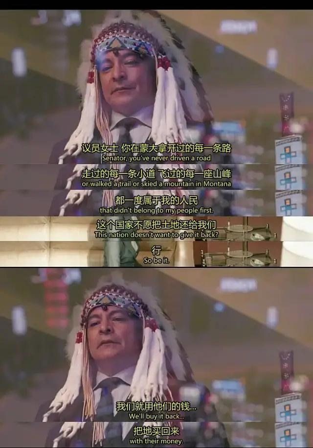从《黄石》中酋长的野心:要将白人从祖先手上掠夺的土地,用他们的方式,一点一点地夺回来。——我们也能看出这场矛盾的历史背景。