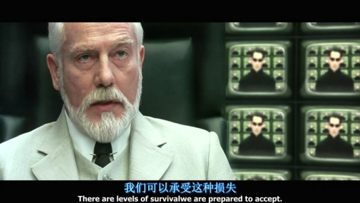 画外音:由于人本身的缺陷,所以,人不能接受一个完美的事物,所以大批的死亡,于是,设计师The Architect就按照我们的历史重新设计了母体。 当我重新设计母体的时候,就根据你们的历史,更精确地反映了人类本性的特异性。但是再一次的失败使我很沮丧,从此以后我就明白了问题的症结在于我太钻牛角尖,一个不囿于完美因素的人才能找到答案。解决之道是是另一个程序偶然间发现的。 一个具有感知能力的程序,当初是设计用来研究人类心理的。如果我是母体之父,那她毫无疑问就是母体之母。 我刚说到,她偶然发现了一个解决的方法:99%接受测验的人中,只要给他们选择的自由,他们就愿意接受程序的安排,尽管他们只是在接近下意识的层次上意识到这种选择。 尽管这个结果可以起作用,但它显然有着根本性的缺陷。因为会引起系统的冲突异常,如果不能有效地控制这种变异,就会威胁到系统本身。 那些拒绝程序的尽管是少数人,但如果不加控制,就会使系统瘫痪的可能性越来越大。 画外音:即ZION里的人们,不接受机器的安排。 你在这里是因为锡安就要被毁灭了,所有人都会被杀,整个锡安都会被铲除。人类最容易预期的反应就是否定一切。但是别担心,这将是我们第六次毁灭它了,我们已经驾轻就熟了。 现在救世主的作用就是回到源头,暂时运用你本身的代码,重新加载主程序,然后你必须从母体中选择23个人,16个女的,7个男的,来重建锡安。不遵守这个过程的话,将导致灾难性的系统崩溃,连在母体上的每一个人都会死亡,再加上锡安的灭亡,最后将导致全人类的灭绝。 "希望"是人类最典型的幻想,同时也是你们最伟大的力量和最致命的弱点。