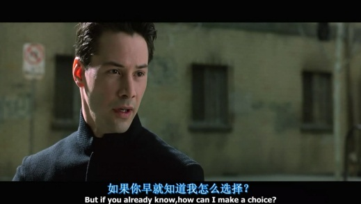 7、当先知化身的Smith在最后的大战中问出那句振聋发聩的话时,“你这么坚持是为了什么?爱情?正义?和平?那些都是虚幻的,……,为什么你这么顽固,你还在坚持?”,没错,这虽然是Smith问的,但是这本质上也是先知一直想要知道的(这里要补充一下,Smith附身一个Matrix里的人以后,化身的样子虽然是Smith,但是应该是会具有原来这个人的知识、见识、甚至能力的)。此时,Neo给出了电影的终极一答:“这是我的选择!”