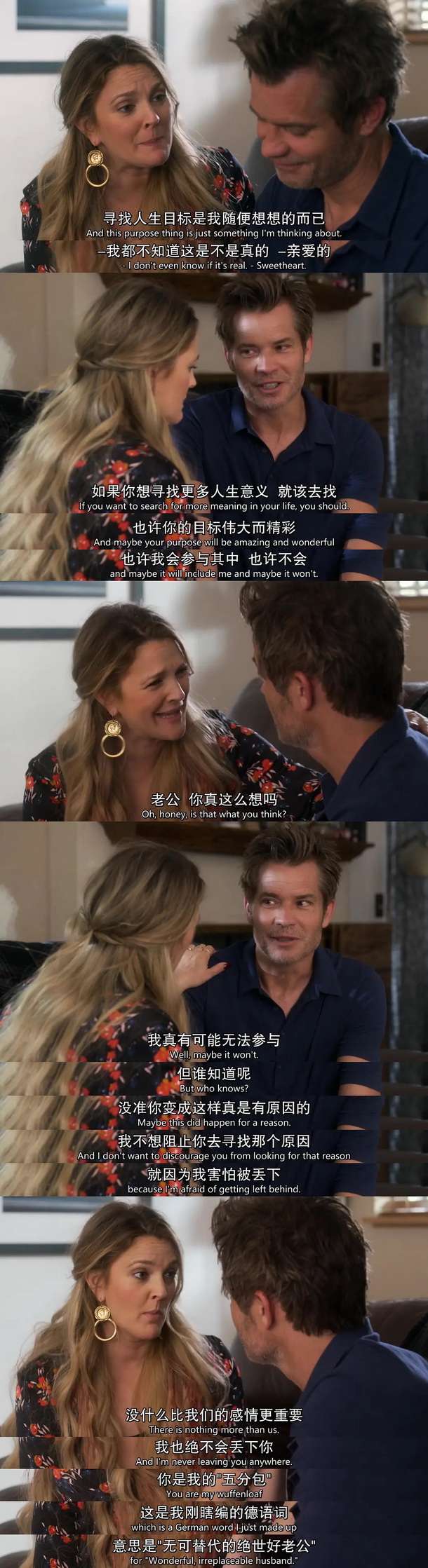 妻子有一天顿悟,然后决定活出自我,embrace who I am。丈夫愿意陪妻子一起耍,恩爱如初。