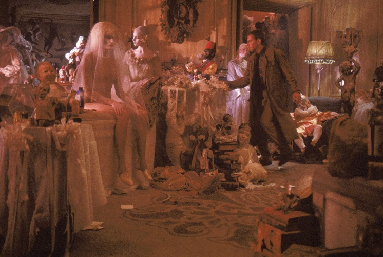 复制人拥有了人性,渴望做一个真人;反过来追杀他们的银翼杀手Deckard,以真人自居,却以理所当然的理由肆意屠杀,逐渐丧失了人性。真人和假人的界限就这样模糊了起来。影片也在多处有意地暗示这一点,另一个女复制人Pris伪装成玩偶,坐在一大堆也可活动的假人之间,真假难辨;她奇异的体操式攻击,以及中枪倒地之后血流如注、狂暴的挣扎,都把她定义成了一种真人和假人之间,一种令人心惊的形态。