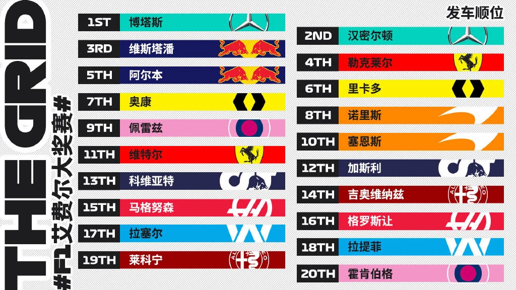 本场比赛因为斯特罗尔拉肚子,霍肯伯格再次前来救场。博塔斯获得杆位。