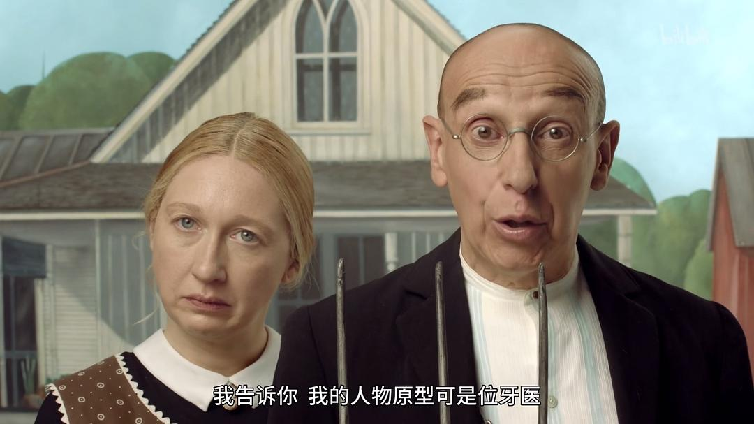 他请他62岁的牙医和他30岁的妹妹作为画中人物的模特,并让他们穿上19世纪维多利亚时期的衣服。