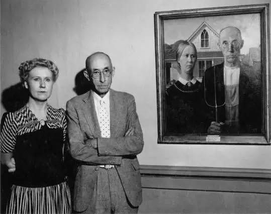 画面中引人注目的一男一女,画家伍德的妹妹,同时也是画中女模特的娜恩·伍德(Nan Wood)坚持认为,这是一对父女,只不过年龄差距看起来不那么明显。