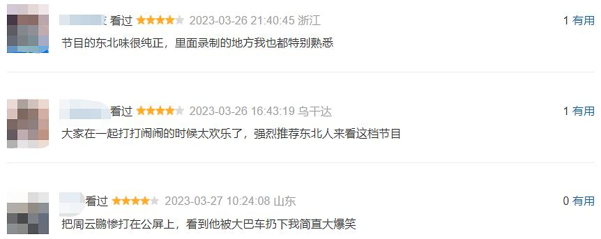 嘉宾们不按照剧本和套路来,互相之间的交流、开玩笑很真实,彼此都非常熟悉就放得开,就是他们日常生活的写照。虽然有很多环节以及设定都很无聊,但是这群人参与活动的过程和个人魅力的呈现远比整个一期的游戏有包袱。飞行嘉宾融入度比较低,虽然基本都是东北人但是走的路线不一样,身份人设以及形象都不融洽。 二人转演员最贴近百姓、尤其是基层百姓,绝活比较多、更亲民。刘能和谢广坤这对活宝亦真亦假,人物和扮演角色的融合,其他嘉宾也都有各自非常鲜明的人物特点。还是这片土地更适合这些原生民,比《象牙山爱逗团》效果上更成功。 对东北民宿和特色的展现,沈阳中街、大集,梅河口,通化,丹东、鞍山、大连、延吉、珲春这些地方的乡土风情的展现都极具当地特色。