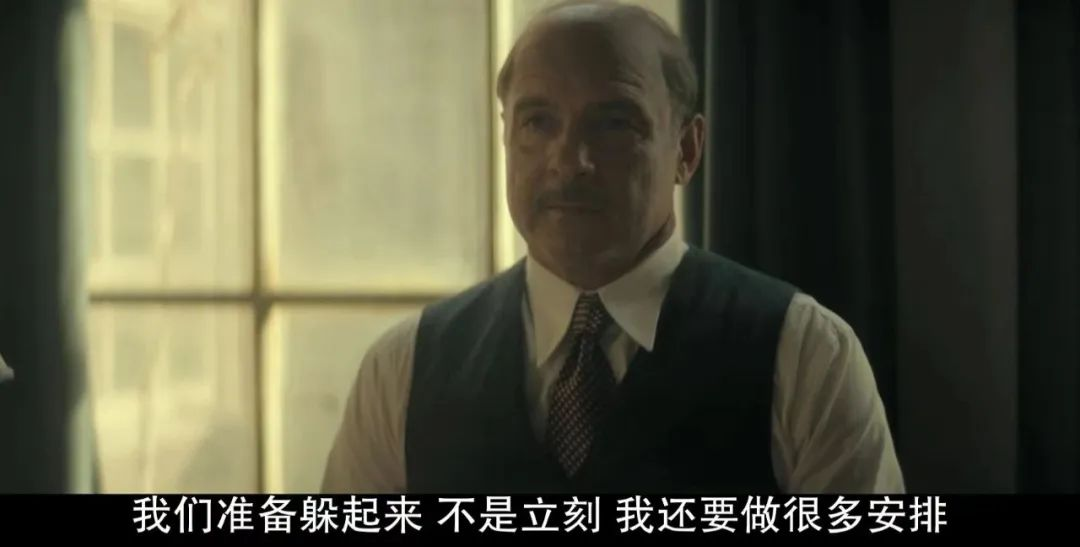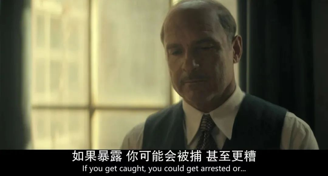 但在看完全剧后你会发现相比起充当那个在漆黑的房间中点亮一丝微光的人,更艰难地是如何为自己、为别人维持住这点儿微光。如果漆黑代表的是危险,那么于弗兰克一家而言,他们的危险感只来自于那小小的房间,所以你可以感受到无论是对安妮、安妮的母亲还是医生而言,他们的不安、矛盾、情感波动都是来源于房间内的事情,比如安妮和她的猫被迫分离、比如安妮对彼得的爱意、比如安妮母亲长期积累的绝望感、医生的不安感等等。但是于梅普而言,她的危险感来自于任何地方、任何时刻,即使是门前的陌生人也会让她紧张,隔着一堵墙的军官也会让她紧张,然后你就会看到她作为一个普通人,会把这种紧张感、危机感的情绪宣泄到日常琐碎中,就像第一集她藏完弗兰克一家后,回家面对丈夫时你能感受到角色明显的情感波动,在丈夫感受到并询问后,梅普自己也有所意识到了的微表情变化。