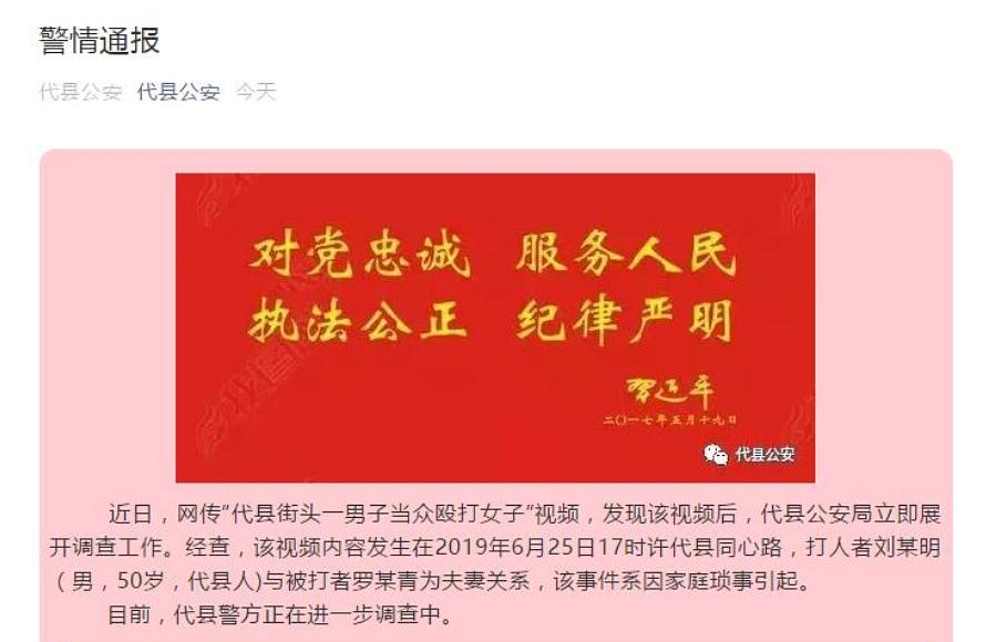 因为施暴者和受害者是夫妻关系,家暴行为就被公职人员怠慢,最后可能演变成一宗家庭惨剧。而公安官方通告中公布的进一步调查,明显是一种不了了之。如果按照健全的司法制度,应该进入一个明确有效的调查程序或者由专责机构介入此事,这才是用法律解决大小暴力事件的节奏。