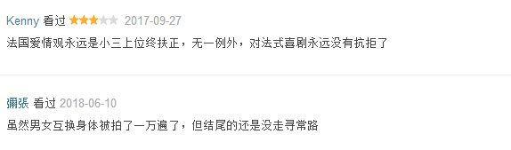 不知道为什么这个分竟然这么低,灵魂互换是很常见,但这里讨论了很多更深层次的问题。On ne naît pas femme : on le devient.这句话也在剧中体现的很好,到后面身处男性身体中的女主性格强硬了一些,而身处女性身体里的男主也开始变得细腻。虽然并不明显,但是也不能将这个灵魂互换相等于羞羞的铁拳。n这部剧有点像 男人当自爱 这部剧,女性是社会角色,不是天生如此。虽然这部剧不如男人当自爱,但是也不应该这么低,我给五分就是为了提高评分。