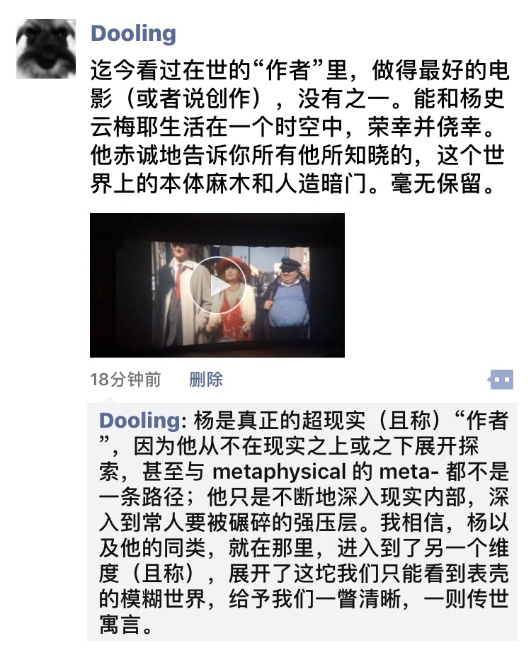 可能,这些朋友没有意识到,杨从来都只是操控木偶的提线师,骷髅教堂和人都是他的“木偶”;这次的“木偶”,换成了一种名曰“电影”或“戏剧”的东西。杨把它们提扯得如此活灵活现(也有可能是过于活泛儿,惊着了一部分大家),以83高龄,从体力到控制力,太了得了。