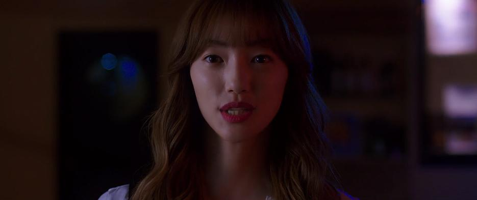 这里李艾完全重现了原版用内裤扎马尾的经典一幕。