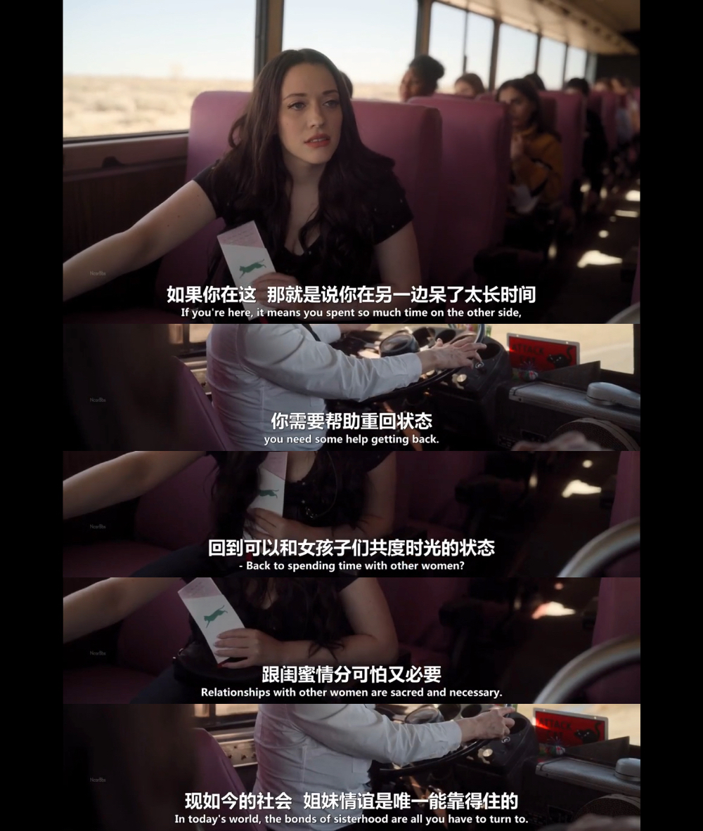 在这一意识里,人被分类在四个场景里:女主和车上乘客刚刚离开的恋人区;正在寻找对象的“附属女孩”等待区;开到一半反悔下车后的备胎区;到达站点后的姐妹情深区。这个设定和传统价值观的区别在于:女孩们脱单”是起点,单身是“终点”,所有显然这是一部带有feminism色彩的剧集。