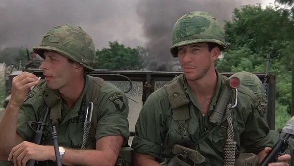 美国大兵都很自我,很有个性,一言不合就大打出手。约翰·贝莱特斯基拿出他女朋友照片炫耀,文森特·安圭拉利开了一句玩笑话,贝莱特斯基就恼羞成怒,两人差点动手,被人拉开。美军士兵在基地悠闲、逍遥、颓废,喝酒、泡妞、打架,遇到越共的炮击惊慌失措,胡乱射击。