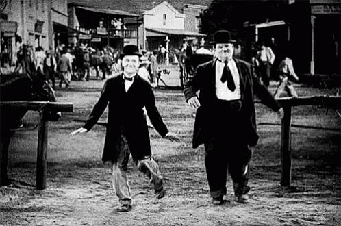 在这期间,两个人渐渐成为一对,离不开彼此的喜剧组合。劳莱蠢蠢的眼神,哈台摆弄他的领带……那些天真幼稚的桥段总能引人发笑。