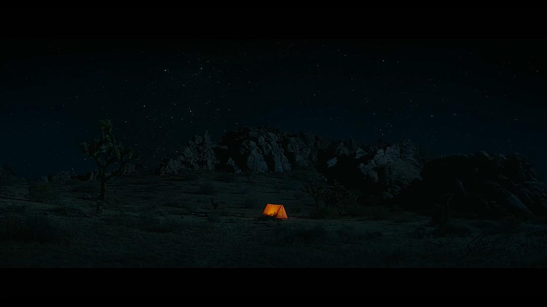 第二,不同于许多时间循环或时空穿梭的作品让主角操纵时间来重复练习把妹神技,《棕榈泉》直接把本该是目标或最终奖赏的妹也送进了循环里,让从此不变的沙漠星空和把他人隔绝在外的特定时空,成为命运相似的两个破碎之人发展爱情的限定舞台。同时,循环里还有一位系统bug定时炸弹一样的第三人Roy,为Nyles和Sarah的二人时光增添一点惊喜和辛辣。