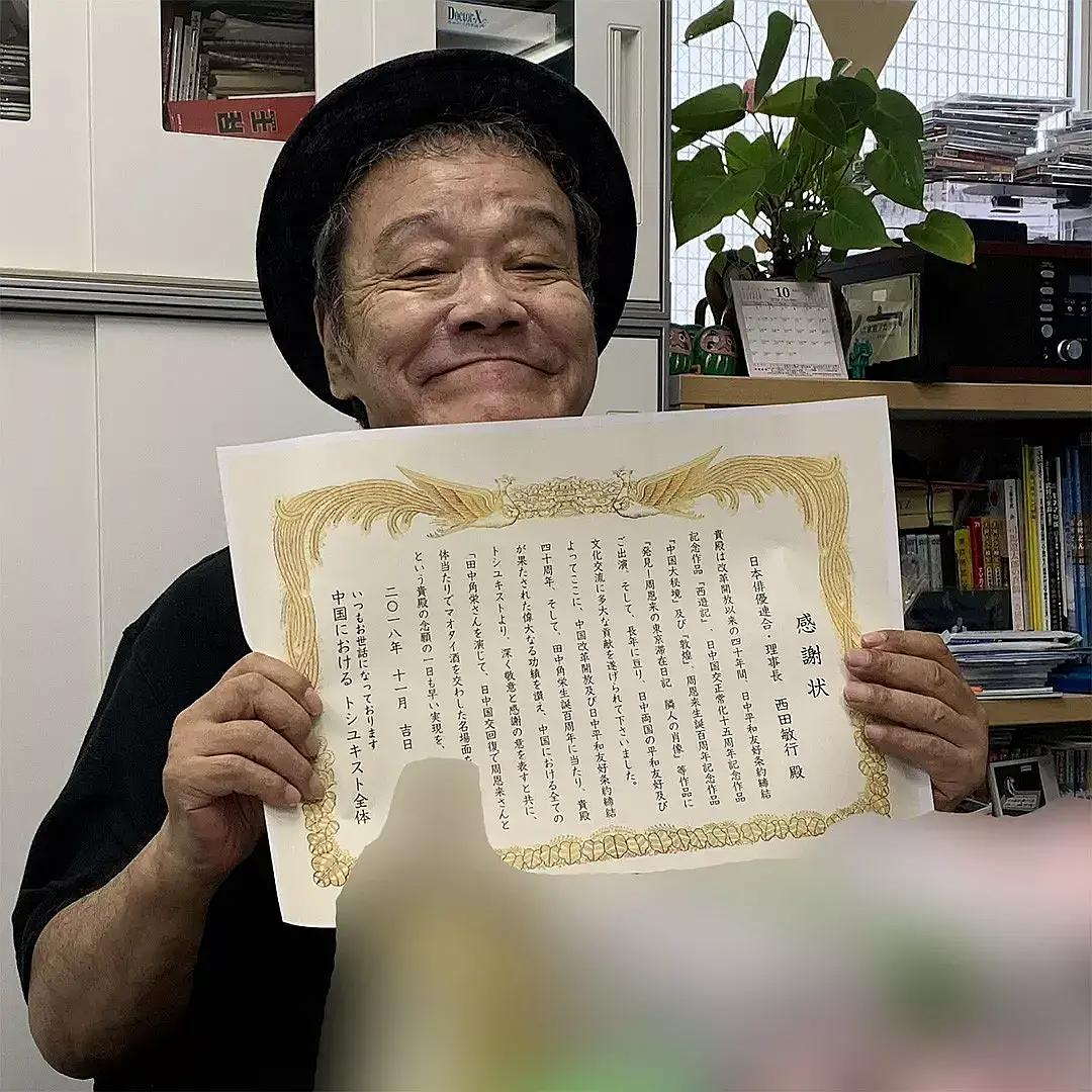 在日本,有这样一位“猪八戒”,他心系中国,长年来不顾来自右翼势力的诽谤中伤乃至威胁恐吓,秉持良知、操守与胆魄为曾在侵略战争中蒙受深重灾难的中国仗义执言;他还自掏腰包,三十余年如一日地坚持出资助力日中文化交流协会承办中国电影/音乐/曲艺/书画等各类文艺形式在日本的表演/展出活动,以促进更多的日本民众接触了解中国文化;汶川地震、新冠疫情等灾难发生时,他也有向被他视为“因缘之地”的中国伸出援手、捐赠款项 ——