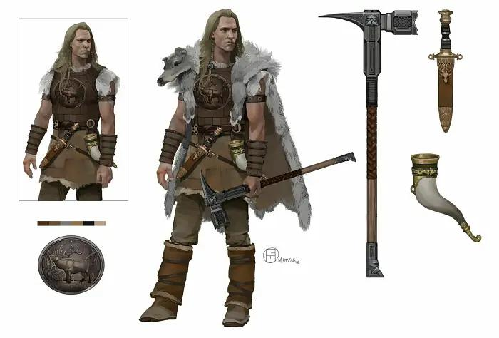 请注意霍尔盖胸口的鹿型徽章——麋鹿部落(正确的翻译应该是驼鹿部落,但咱们已经叫习惯了)可是冰风谷地区乃至整个北境相当强悍的一支野蛮人部落。而且这支部落拥有着悠久的历史,同时它还出过DND史上最有名的英雄之一——沃夫加。