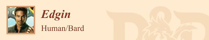埃德金:“过奖过奖,之后我们又召集了一些伙伴,其中包括一名术士西蒙,一名盗贼弗奇和我们一起冒险。对,就是,贾斯蒂斯·史密斯和休·格兰特,他们有参加上次的团,你还记得吧。”