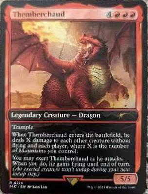 最让人眼前一亮的是最后这张特殊赠卡——影片中的大肥龙。除了传统的龙生物特有的AOE效果,他还有一个“飞起来一次就必须休息一回合“的耗竭(Exert)异能。我们的大肥龙大多时间甚至只能滚着前进,而来自阿芒凯的耗竭机制使得这张特卡的设计风味满分!