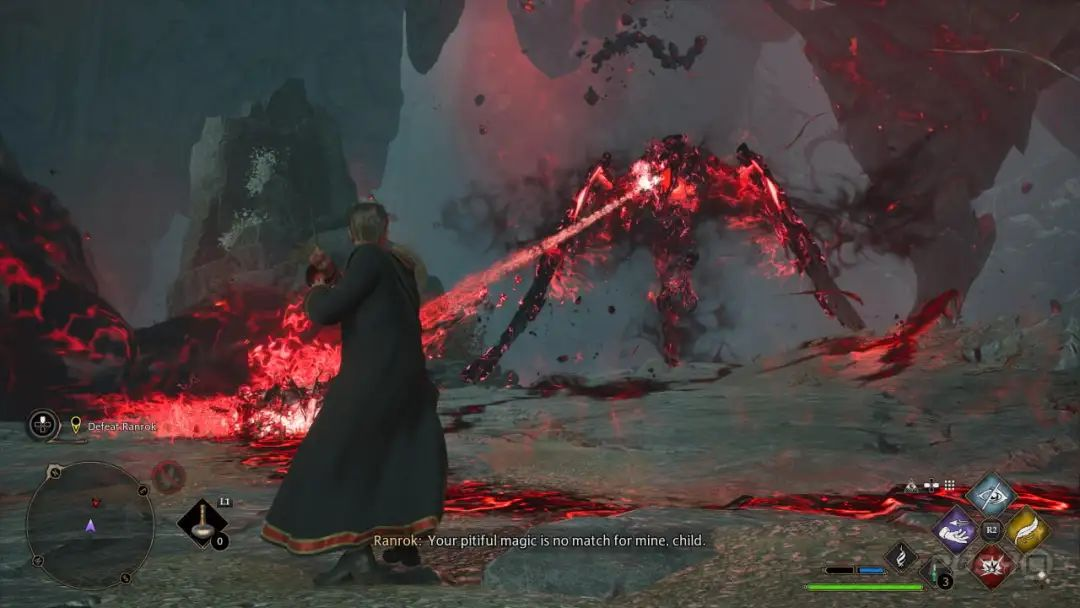 与红袍女巫的终极大战,再度体现了团队各司其职的配合战,仔细看这场戏,其实采用了回合制打法,就像功夫片里的套招,你来我往,兵来将挡,角色们的特点被全部发挥出来。导演技巧不错,并未明确让你看出来,而是通过镜头调度和节奏上的密度,让游戏的感觉更符合电影的逻辑。接下来是多立克、西蒙与红袍女巫的斗法,又一场充分体现视效的段落,法术的视觉走的是华丽诡谲风格,有种看周星驰风格的《旺达幻视》的错觉,当索菲娜使出一招巨型血手,西蒙以石子神掌回应,就像《功夫》中的火云邪神VS如来神掌。顺便说,这两只手根本没有硬碰硬,而是在“掰手腕”,真是极尽搞笑之能。导演还在它们正式掰之前调用了一点西部片牛仔对决前的那种基调,甚至能看到有风滚草在他们中间吹过。德鲁伊变身枭熊与女巫施法的石龙K.O.,也有那么点《西游降魔篇》+《西游伏妖篇》里片尾大变身的意思,就是那种巨形野兽化身的力量抗衡。