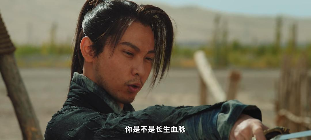 长生的人设支撑着我看完这部剧。并非颜控,而是那似曾相识的熟悉感。他束发刘海左偏,胡子拉碴,身材修长,一身黑衣劲装,长剑缚于布巾背在身后。同类型角色我肯定是在哪里见过,已知打底的花纹长衫多次出现在其他网大,翻了结尾的演员表百度后却是第一次看他主演的电影。想不起来但又确信哪里见过的,难受的像蚂蚁爬心。