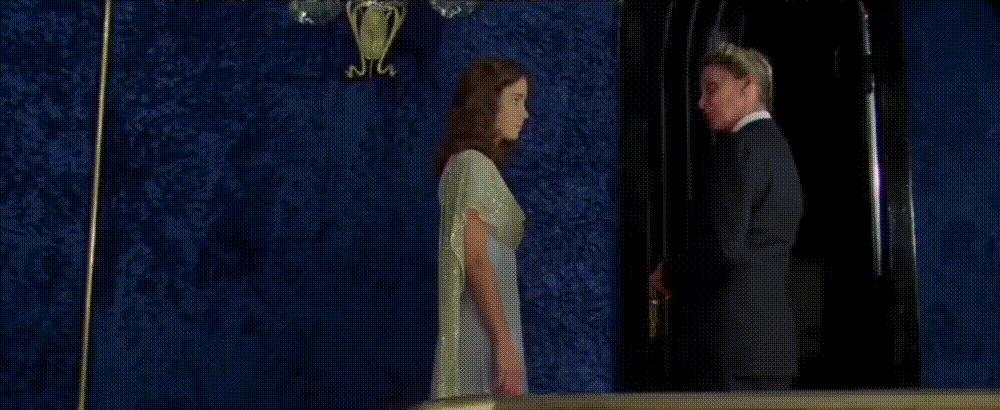 本片导演的做法应该是属于前者,较多地运用一些镜像感的道具布景等(如水面,镜面等),营造诡异虚幻的视听感受(见下面动图)。而相似题材的达里奥·阿基多导演的《阴风阵阵》则是运用上述后者的一个美学理念(漩涡/未来主义)来设计调度中的视觉感受(见文末动图)。