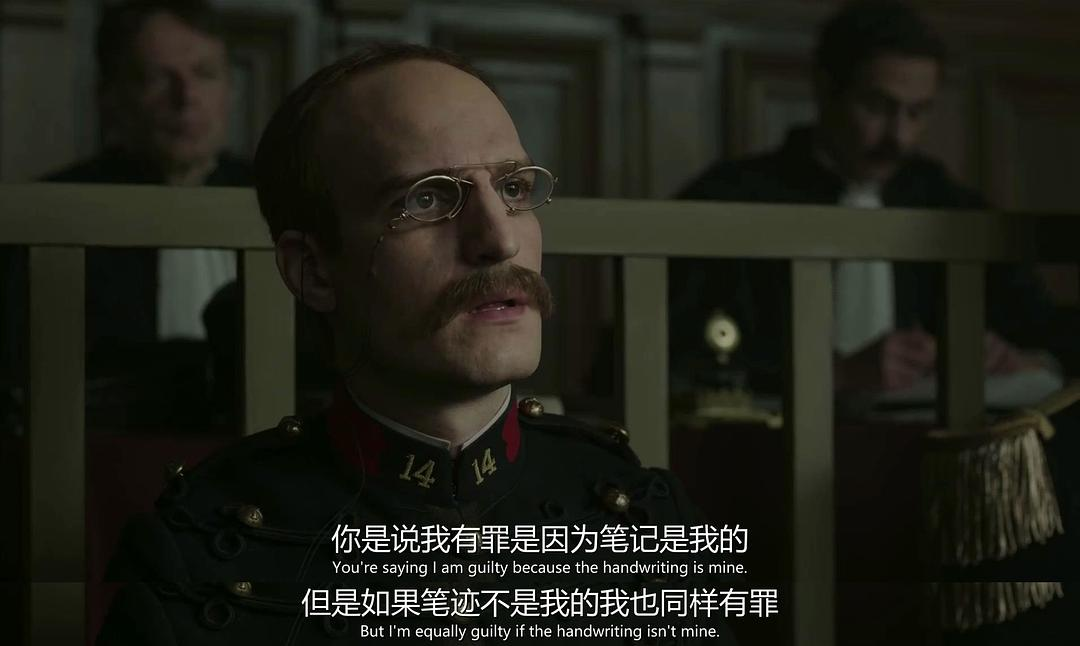 我印象最深的一段就是左拉的“我控诉…”,随着激昂文字,镜头像一把枪,依次指向那些被控诉者。这是全片最有力的一场裁决。