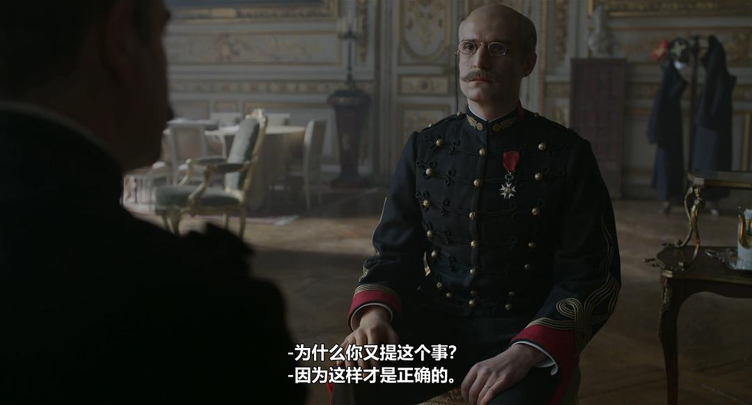 波兰斯基显然也注意到了这个处于“正邪”抉择之间的人物的复杂性,他以后者为核心展开了全片的叙述。不过,不同于我心中英雄式的皮卡尔,导演将他塑造成坚守自己职责和信念的普通人——他有多个面向:认真工作者、通奸者、有反犹主义倾向者,他像你我一样不完美,但他也和你我一样用平凡成就不凡。影片结束时,重回军队的德雷福斯很克制地对为他翻案的“功臣”皮卡尔说了句:“你只是尽了自己的职责。” 是的,对那一代还有信念的人而言,忠于自己的信念不过是最基本的操守。德雷福斯也是这样,即便被隔离关押了四五年、不能与任何人交流,他在重获自由后对国家和军队也毫无怨言,他甚至还去到一战前线,为国奋战。