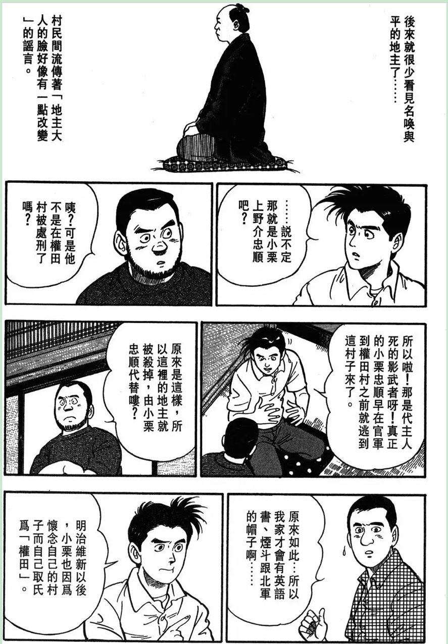 漫画里面假设了一段血腥的隐秘,这当然在电视剧里被简化成了影武者替死,化名隐居。