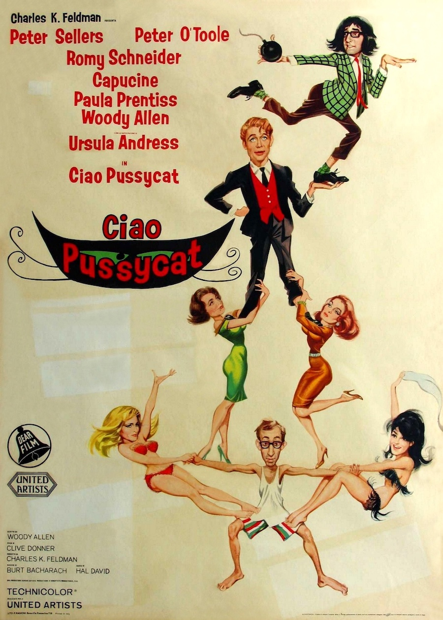 活地阿伦初试啼声的编剧作,自己亦有粉墨上场,其他包括演「女人汤丸」的彼德奥图以及 Peter Sellers(演怪人 Dr. Fritz Fassbender)。如活地早期作品一样,形式松散,笑料不乏,又有 Paula Prentiss、Capucine、Ursula Andress 等美女点缀。尾段在追追逐逐中变为 anarchic slapstick,而一场旅馆房间混战,更令人想起马克斯兄弟在《歌剧院之夜》(A Night at the Opera, 1935)中的一幕船舱经典。(4/07)http://mcyiwenzhi.blogspot.com/2009/01/whats-new-pussycat-1965.html