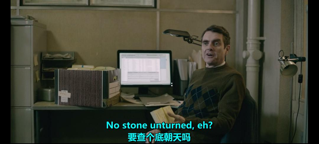 此外,这里的Slough是男主被贬到的这个部门的名称,很容易让人联想到in slough这个词组,表示深陷泥潭(这里要注意一下gh字母并不发音)。在后面男主和他的前同事spider(毒蜘蛛)的对话中也有体现,多损~