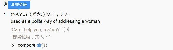 在英国一般只有王室和女警官会被称为ma'am。而在北美的使用范围比较广,对于女性都可以用这个词来表示一种尊称。说到ma'am这个词,其实不少年轻女性都不太喜欢被称为ma'am,有种被叫老了的感觉。其实ma'am本身没有年龄的概念,主要就是尊称,但是“人人平等”的美国,总觉得被人“尊称”了,就是认为我比你老,所以还是慎用哈。