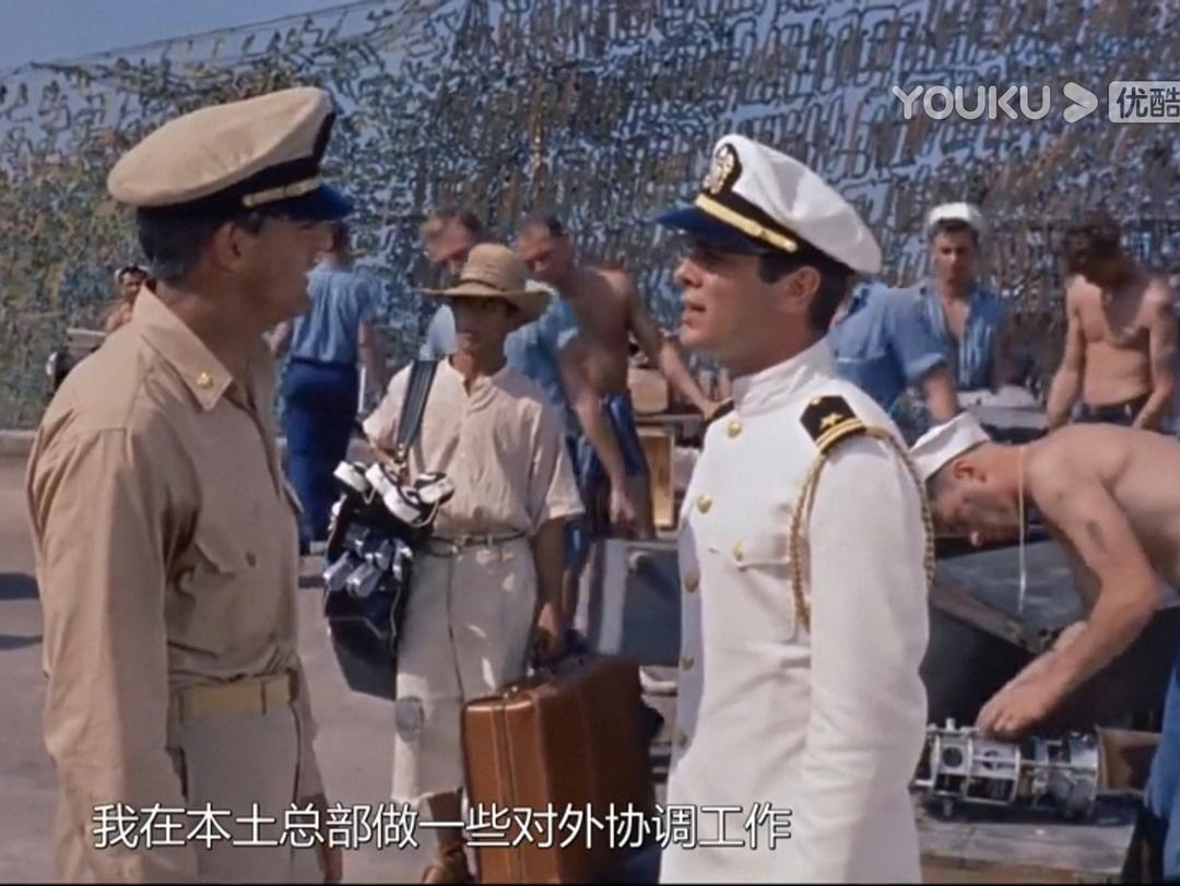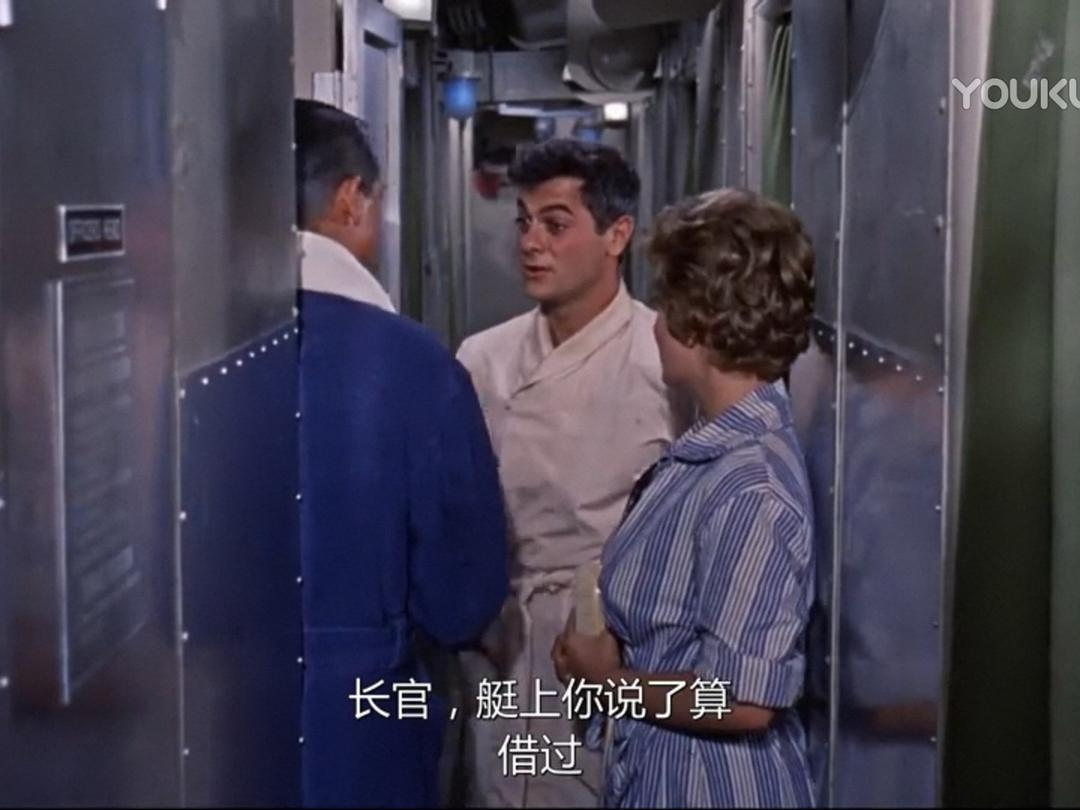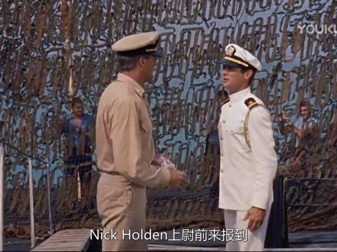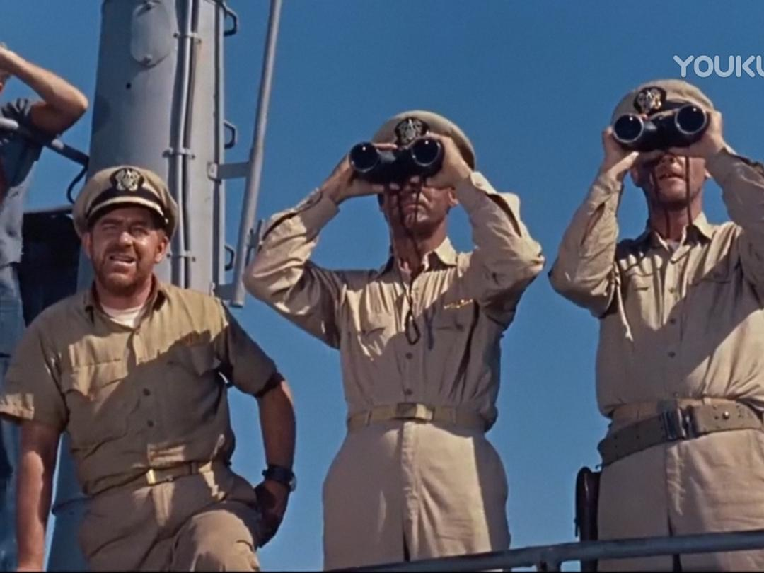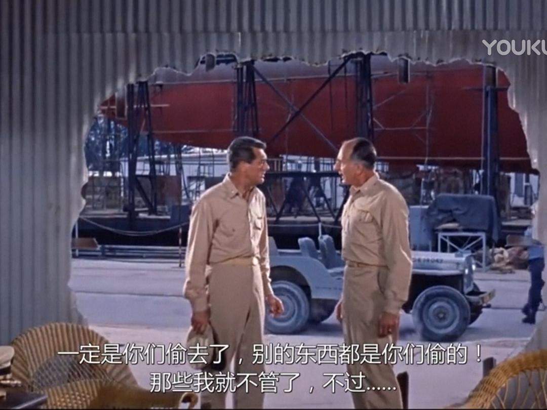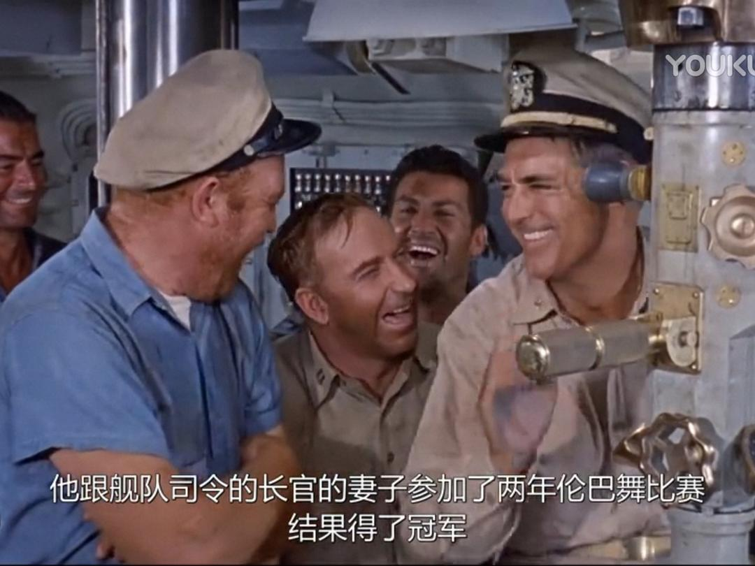 时间:太平洋战争初期 地点:菲律宾 人物:以加里·格兰特为首的潜艇艇长。小日本突然来袭,潜艇被重创,缺人、缺零件,格兰特找上级要人要东西,但领导只配给他一个公子哥:托尼·柯蒂斯。柯蒂斯一身白衣,闪亮登场,他自称啥也不会,以前都在军队俱乐部里招待客人、跳桑巴舞,这让艇长大失所望。