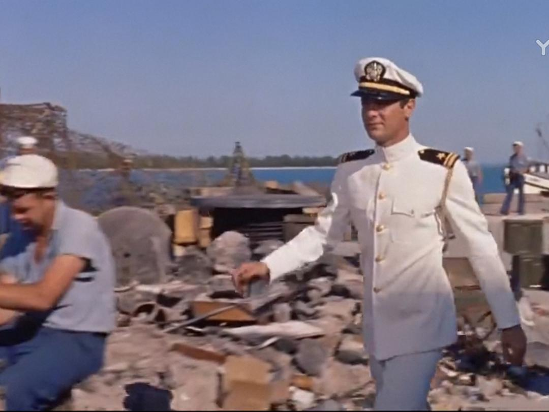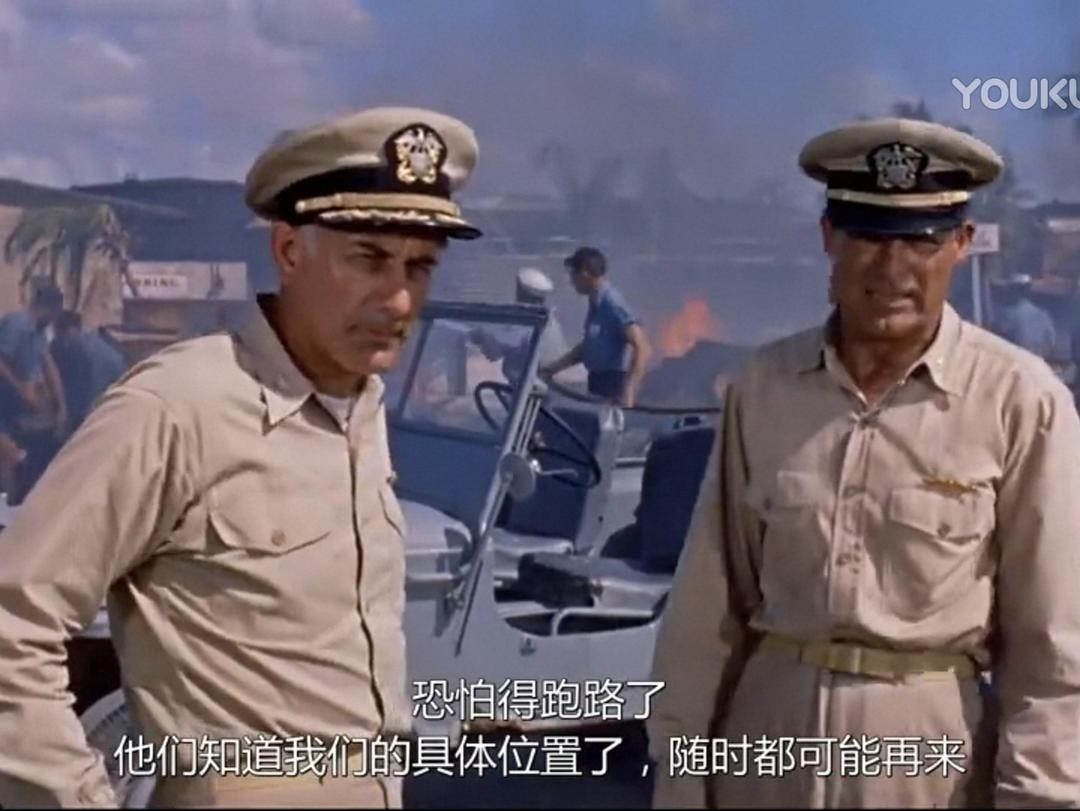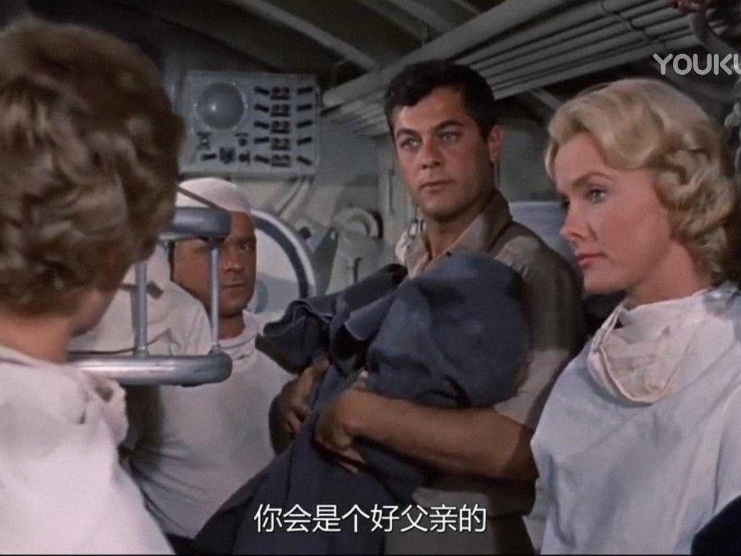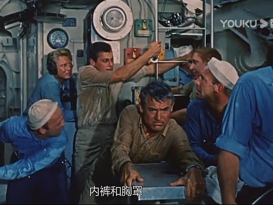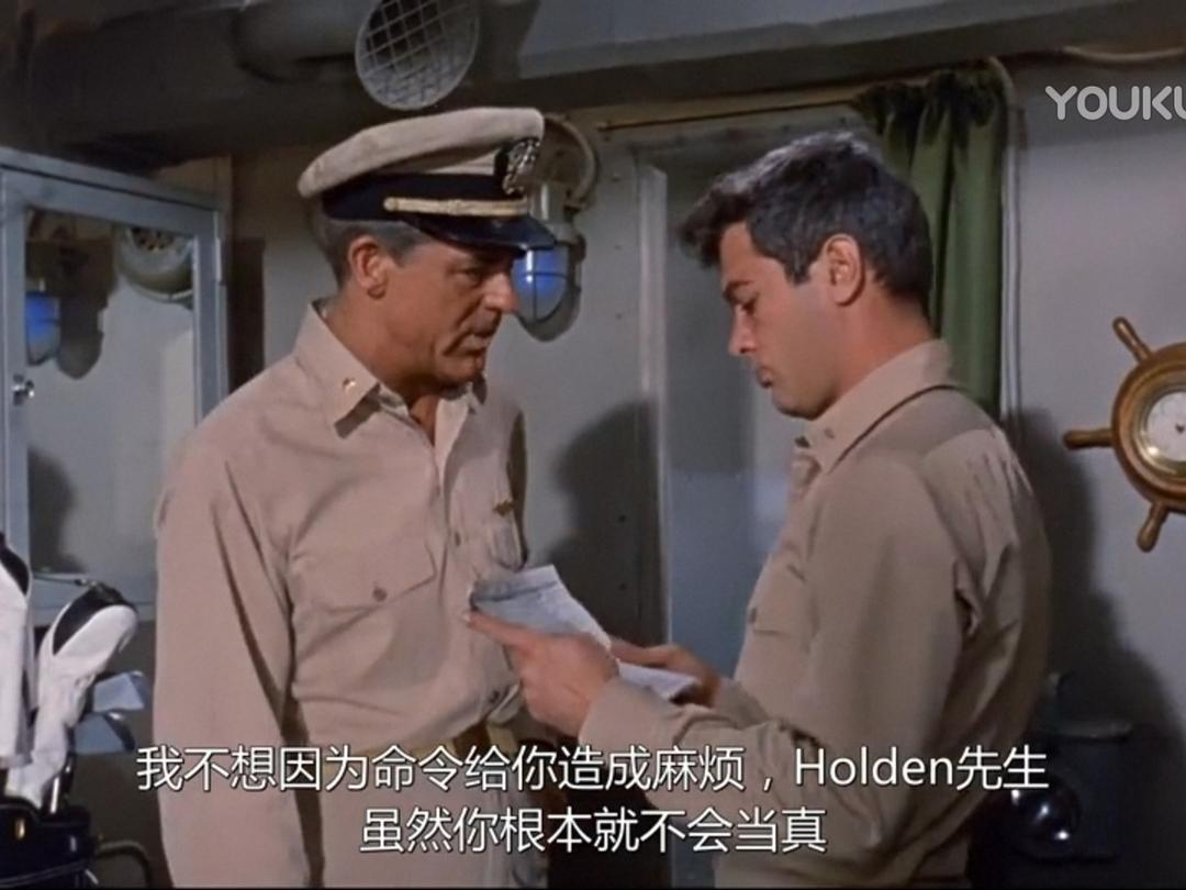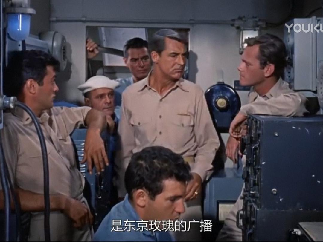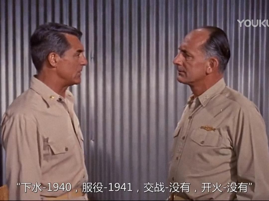 时间:太平洋战争初期 地点:菲律宾 人物:以加里·格兰特为首的潜艇艇长。小日本突然来袭,潜艇被重创,缺人、缺零件,格兰特找上级要人要东西,但领导只配给他一个公子哥:托尼·柯蒂斯。柯蒂斯一身白衣,闪亮登场,他自称啥也不会,以前都在军队俱乐部里招待客人、跳桑巴舞,这让艇长大失所望。