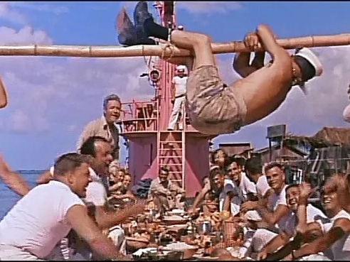 爱德华兹拍出来的好片太多了,包括奥黛丽赫本的《蒂凡尼的早餐》,至今仍被人顶礼膜拜、奉为经典。今天说的《粉红色潜艇》是他的早期作品,它就好像《粉红豹》的祖师爷,也一头扎进了粉艳俗气的笑料里。
